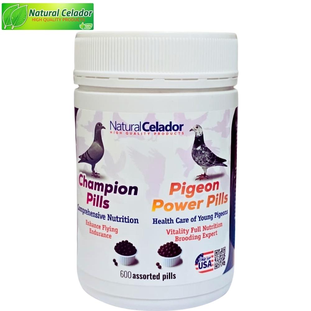 Natural Celador Pigeons Power Pills + Champion Pills es un pack nutricional completo diseñado para cubrir todas las necesidades nutricionales de las palomas, tanto en su rutina diaria como en momentos de alta exigencia y competición 🕊️🔥.